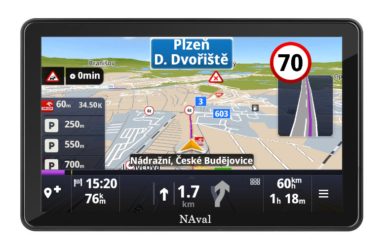 Vlastnosti GPS navigácia 7" NAval DC7